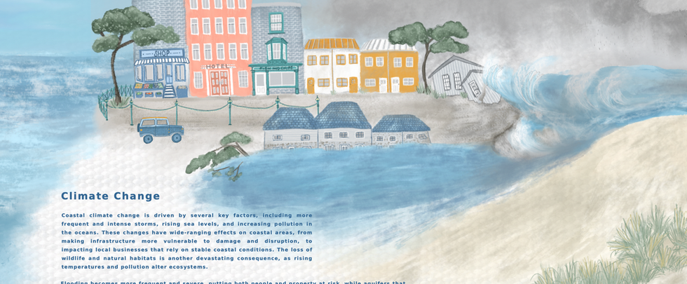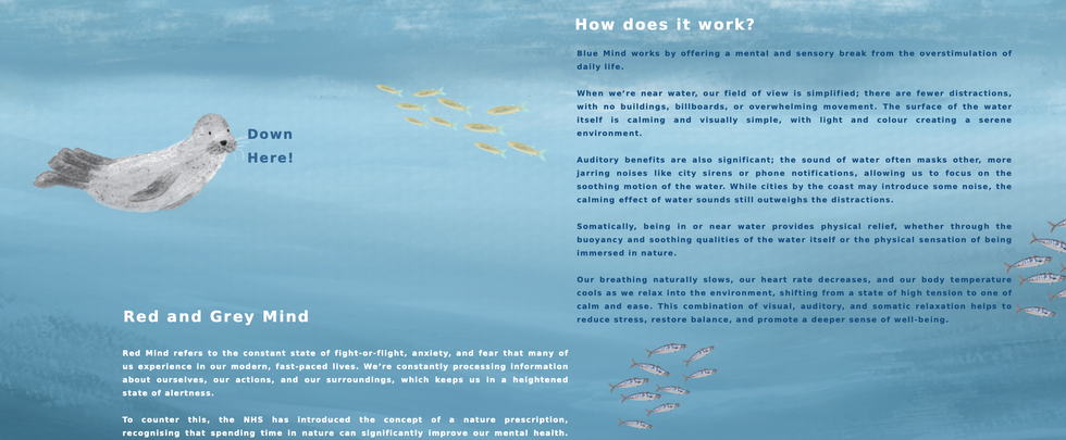 This website is designed to invite users to reflect on how their experiences both as children and adults shape the way they see and interact with the coast. By introducing the principles of Blue Mind Theory, the site highlights the emotional and mental well-being benefits of spending time by the sea, while encouraging a deeper understanding of the coast as a place of both joy and responsibility.